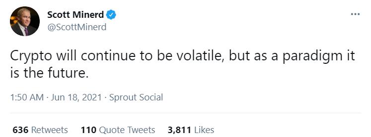 ZEC $318.37 +0.90%链捕手消息,资管巨头古根海姆(Guggenheim Investments )首席投资官Scott Minerd在推特上表示,加密货币将继续不稳定,但作为一种范例,它是未来。