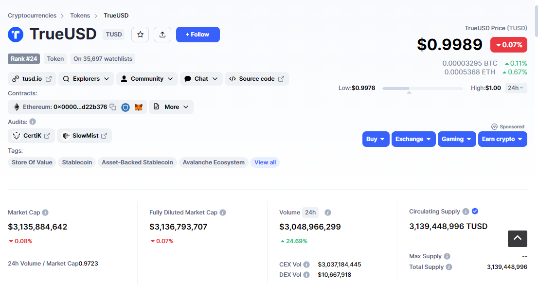 是否会波及TUSD(TrueUSD)?